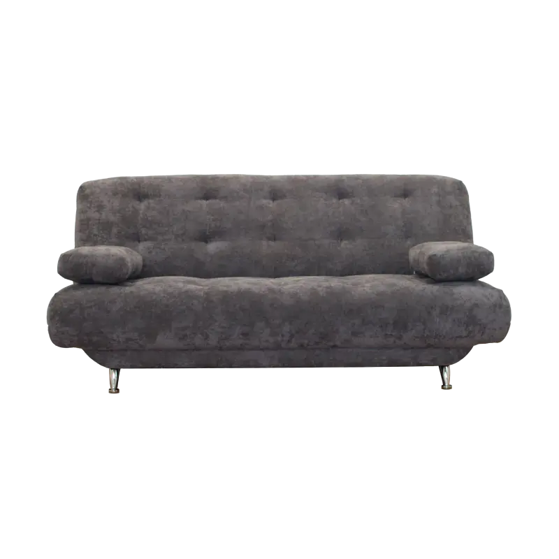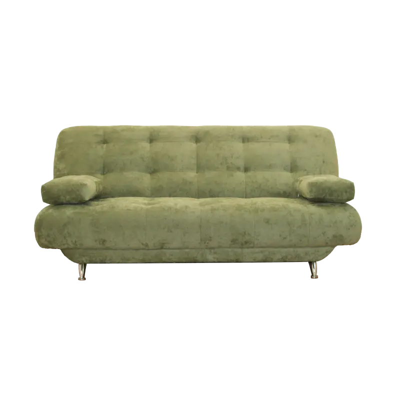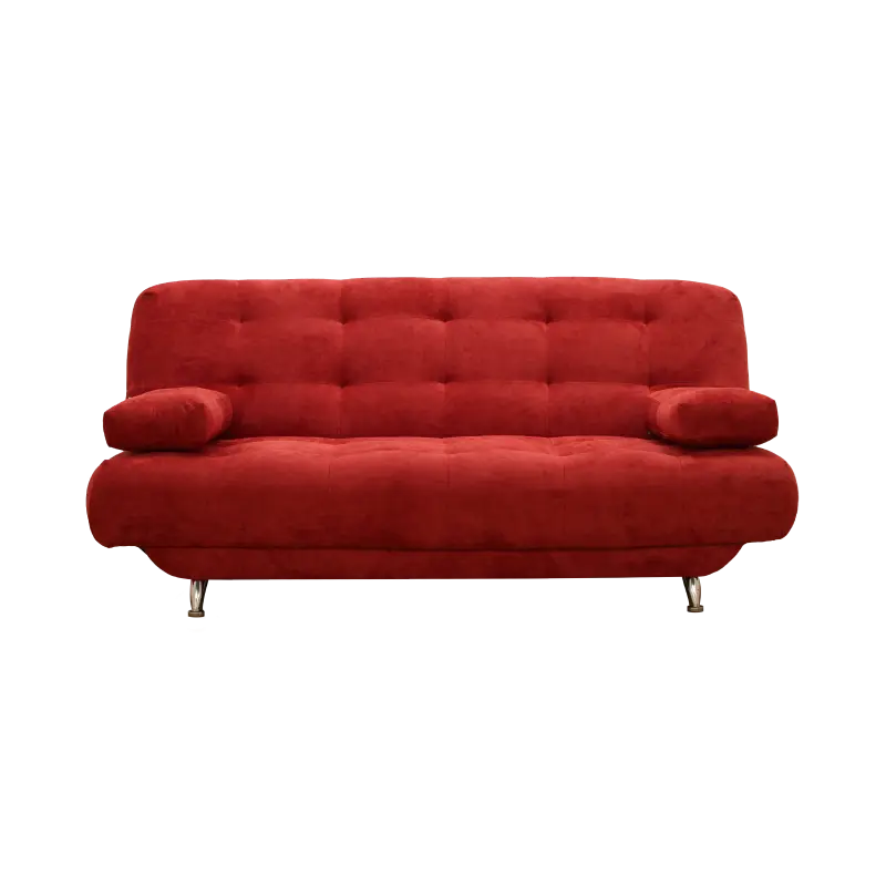 Descripción: Sofá cama de estilo contemporáneo. Superficie de cama intermedio entre colchón individual y matrimonial. Dos cojines riñoneras. Está fabricada con estructura de madera de pino, tapizada en tela 100% poliéster con apariencia y tacto de lino.