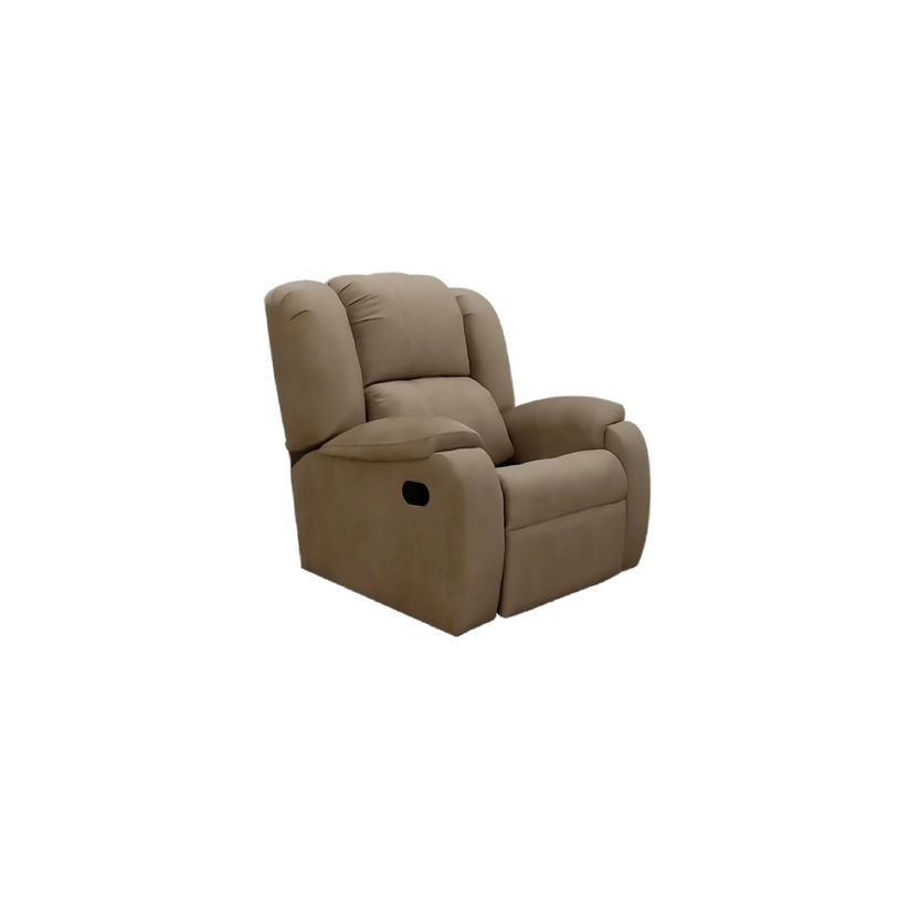Descripción: Sillón reclinable de estilo contemporáneo. Sistema de reclinable mecánico. Está fabricada con estructura de madera de pino, tapizada en tela 100% poliéster con apariencia y tacto de microfibra.